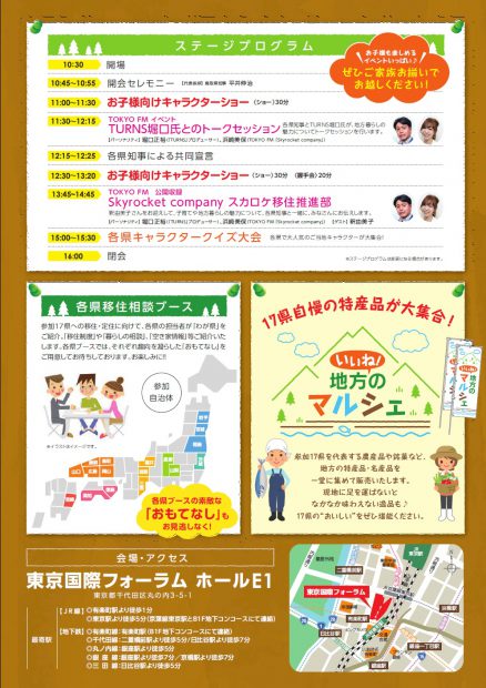 17県が集結し、移住相談や特産品が大集合するマルシェ、その他様々なステージプログラムも予定されています。