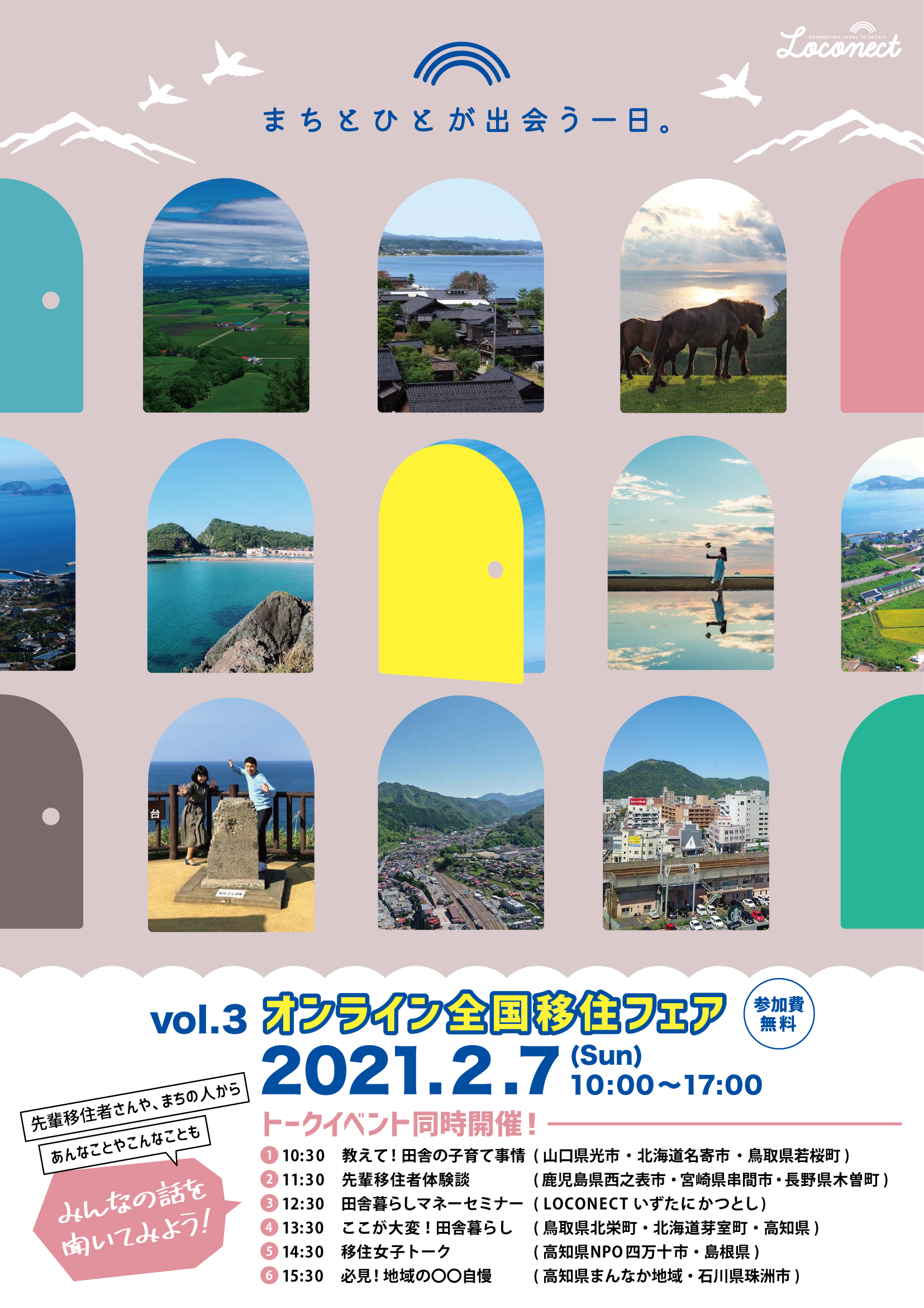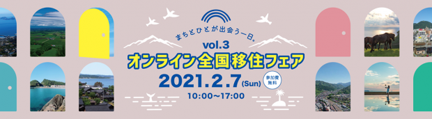 2/7(日)に開催される「オンライン全国移住フェアvol.3」に出展します。