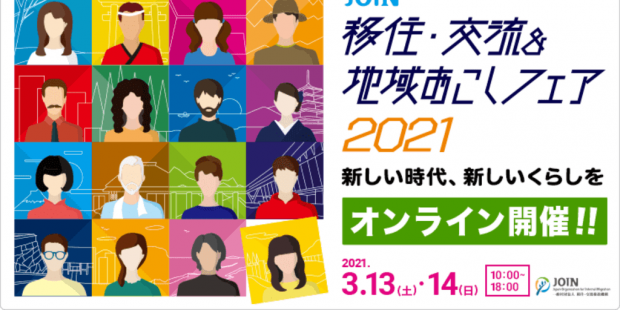 毎年開催されている「JOIN移住・交流&地域おこしフェア2021」が3月13日(土)、3月14日(日)に完全オンラインで開催されます!